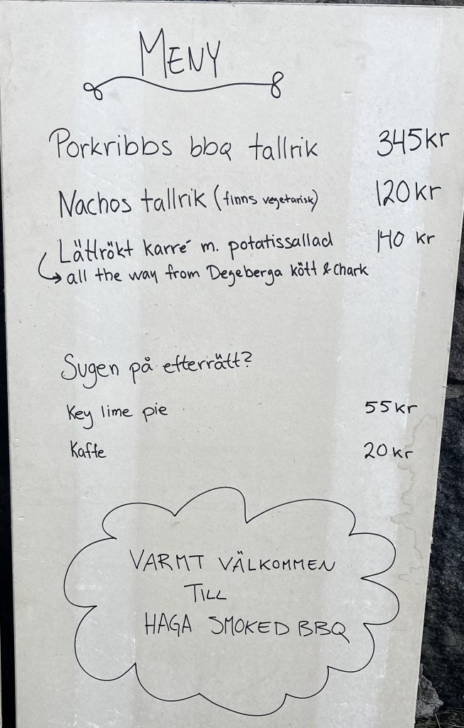 ”Ända sedan vi såg ”Food and Fire” med Niklas Ekstedt på TV för några år sedan har vi pratat om att åka till Texas. Eller i alla fall Brisket and Friends i Sthlm eller Holy Smoke BBQ på Bjäre för att äta riktig smoke bbq…och wips finns det en nyöppnad smoked-bbq-krog i grannbyn. Haga Gård, Everöd – på cykelavstånd dessutom. Så gott, så välkomnande och vi blev riktigt mätta och belåtna.”