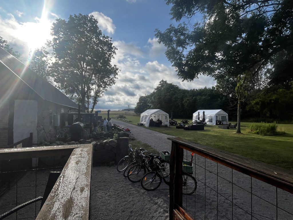 Njut av härlig gårdsmiljö med vidsträckt utsikt över Linderödsåsen. Se vår fantastiska solnedgång. Njut av god hemmalagad mat och kalla drycker av alla dess slag.
